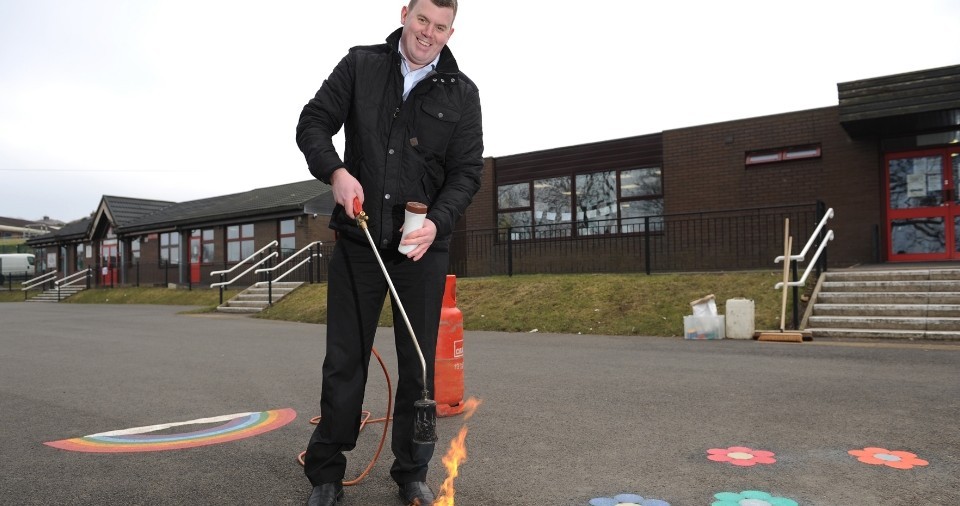 Blackburn-based Uni-play Ltd supply and install thermoplastic playground markings to schools and nurseries, including games like giant Snakes and Ladders and the classic hopscotch.